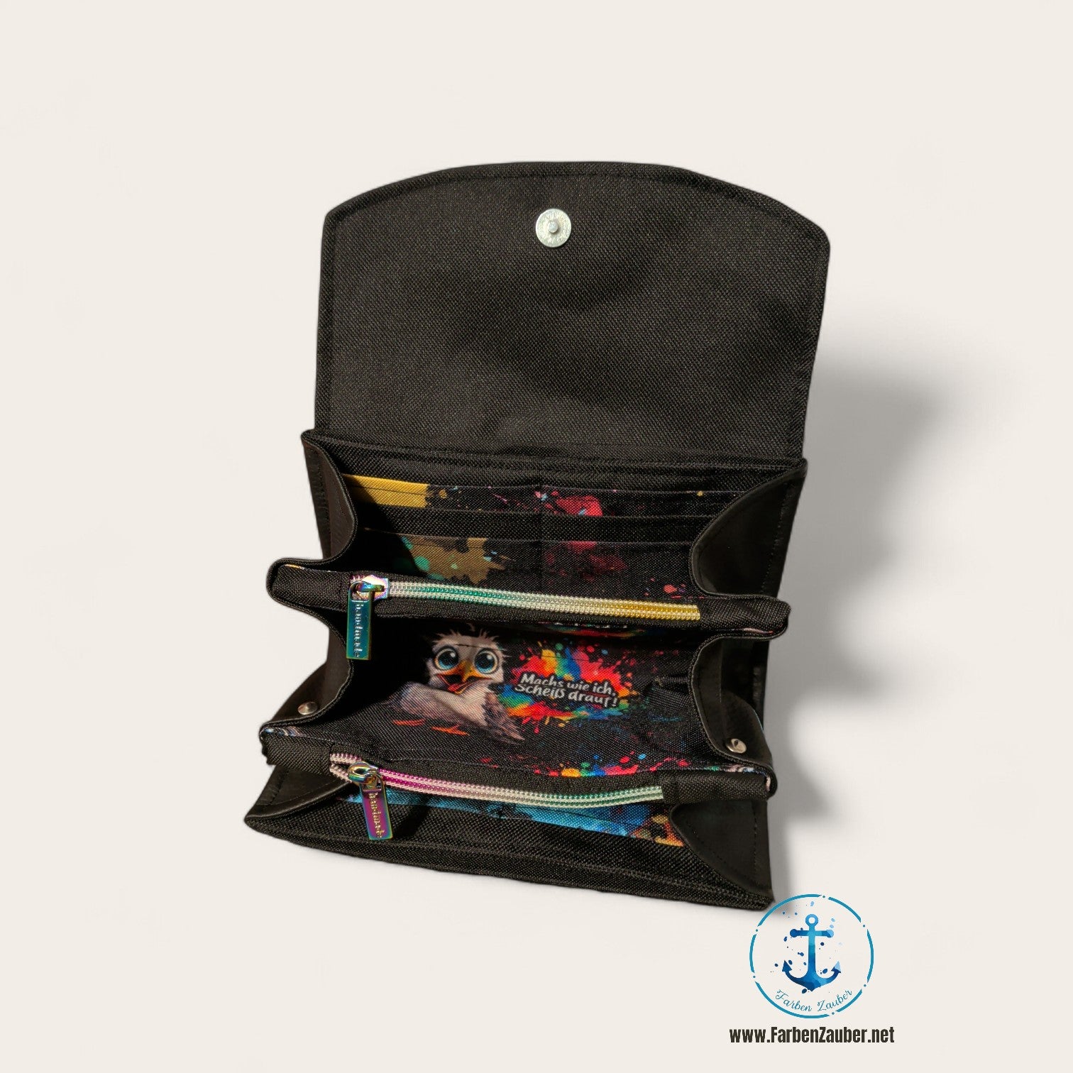Große Geldbörse mit Möwe "Machs wie ich, scheiß drauf!"